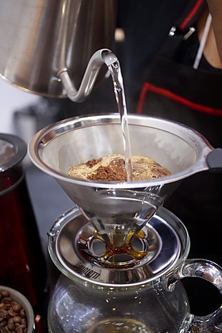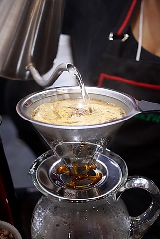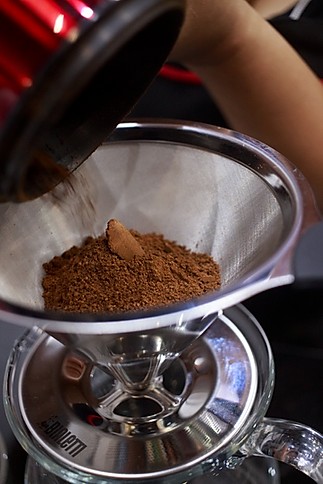 – Faça uma pré-infusão colocando água suficiente para cobrir todo o pó dentro do pour over. Espere a água descer e, em seguida, complete com o restante da água.
