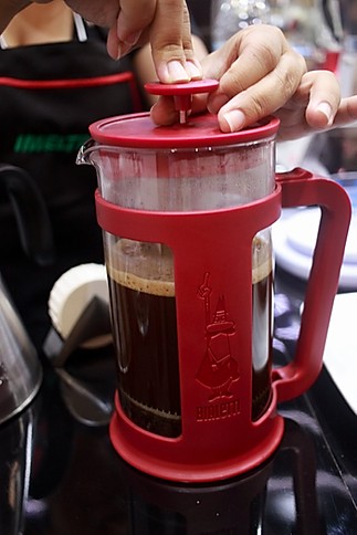 A french press, ou prensa francesa, teve seu surgimento na França, por volta de 1850. Apesar da origem e nome franceses, foi o italiano Attilio Calimani que registrou sua patente, em 1929. A prensa francesa possui um recipiente de vidro, composto por um êmbolo com um filtro feito de metal bem fino que separa o pó do café para o consumo final. Este pequeno filtro é o responsável por uma infusão densa do café, com aroma preservado e consistência mais encorpada. É uma forma de extração perfeita para quem quer garantir um café aromático, encorpado e saboroso.