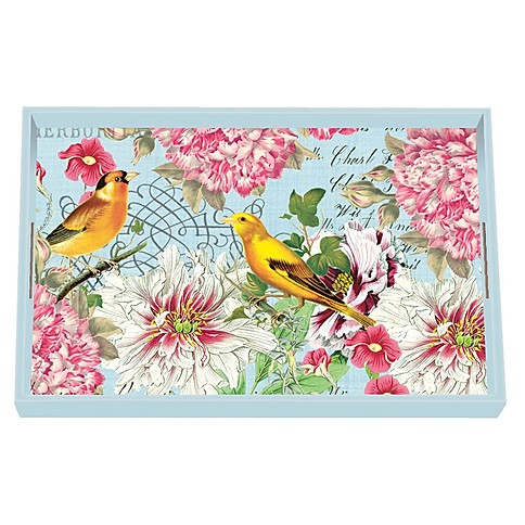 A coleção Garden Melody é repleta de produtos como pratos, bandejas, aventais e guardanapos num tom azul claro com flores e pássaros reunidos em uma estampa extremamente delicada, sensível e muito charmosa. A combinação dos elementos da estampa me remete imediatamente às casas de chás e cafés de antigamente, trazendo um toque saudoso e vintage para o prato moderno.