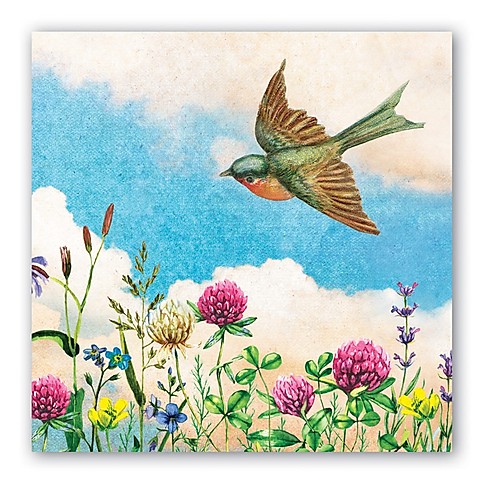 A ideia era trazer muita cor e alegria para a primeira refeição do dia e por isso fiz um mix de coleções da Michel usando a bandeja da Cloud Nine com uma estampa de um céu azul lindo, e guardanapo e prato da coleção Bird Song, repleta de passarinhos para trazer alegria para o novo dia.